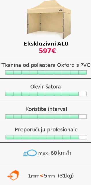 su izvrsna opcija za one koji trebaju brzo i jednostavno sklonište s dovoljno prostora za svoju robu. Inovativni sklopivi mehanizam omogućuje jednostavno i praktično sastavljanje, spreman za prodaju samo je pitanje vremena. Ovaj šator veličine 2x3m pruža idealan prostor za predstavljanje i prodaju proizvoda.